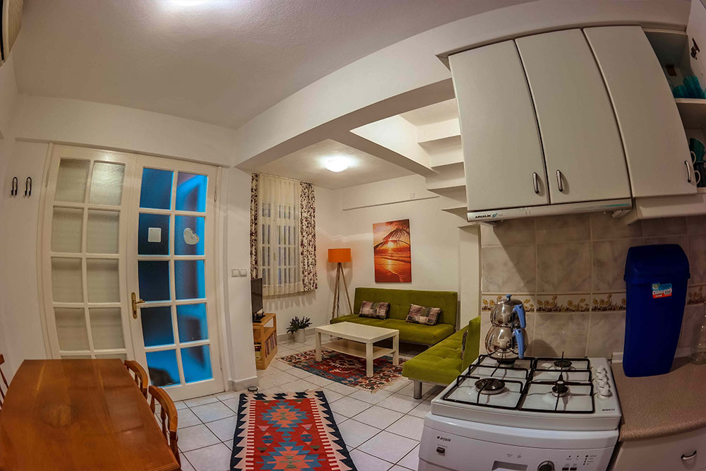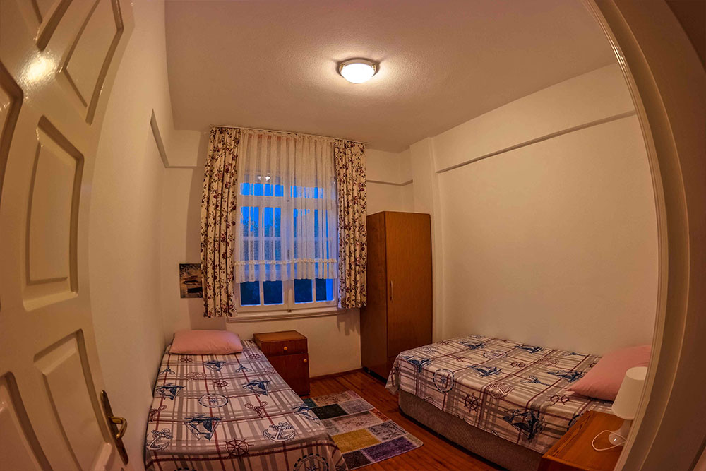 Bu Evimizde her biri ikişer yataklı 2 oda bir salon, banyo, 2wc, mutfak, balkon ve terasımız mevcuttur. Toplam kişi sayısı 6 ile sınırlıdır.